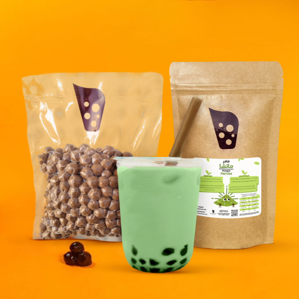 استمتع بتجربة شاي الماتشا الاخضر الطبيعي الأصلي المشهور بطعمه الفريد مع كرات البوبا اللذيذة وإضافة الحليب البارد
